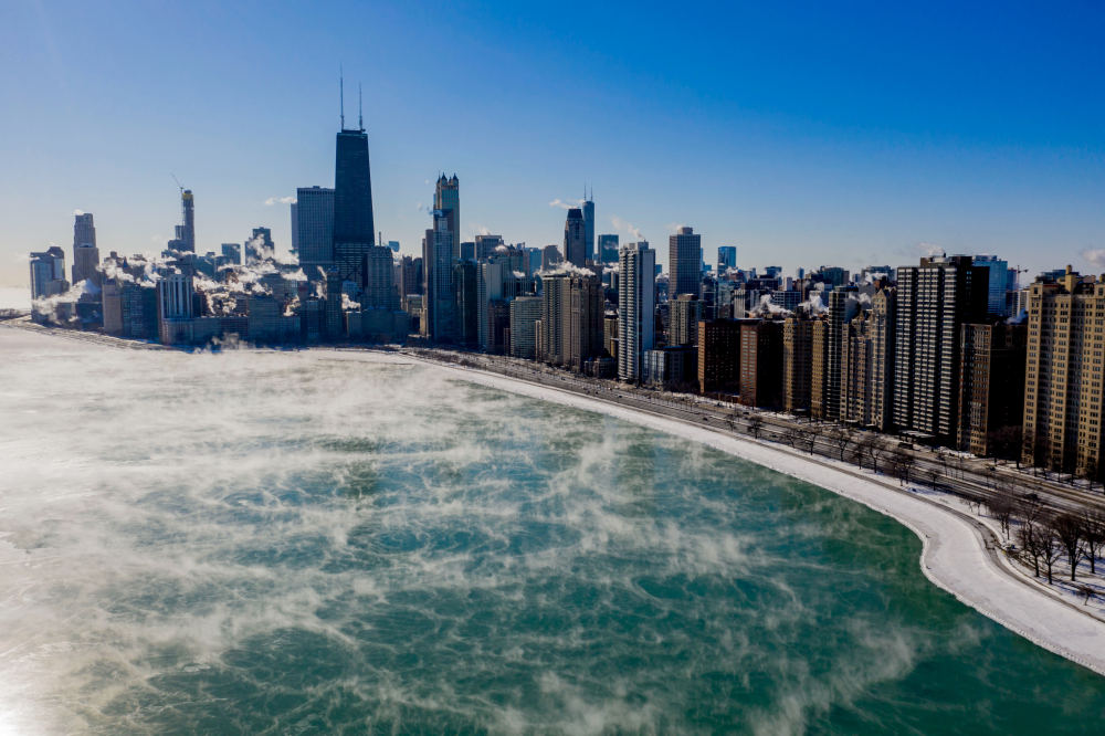 2019年1月30日在美国芝加哥拍摄的结冰的密歇根湖。新华社发(帕特里克·戈尔斯基摄)