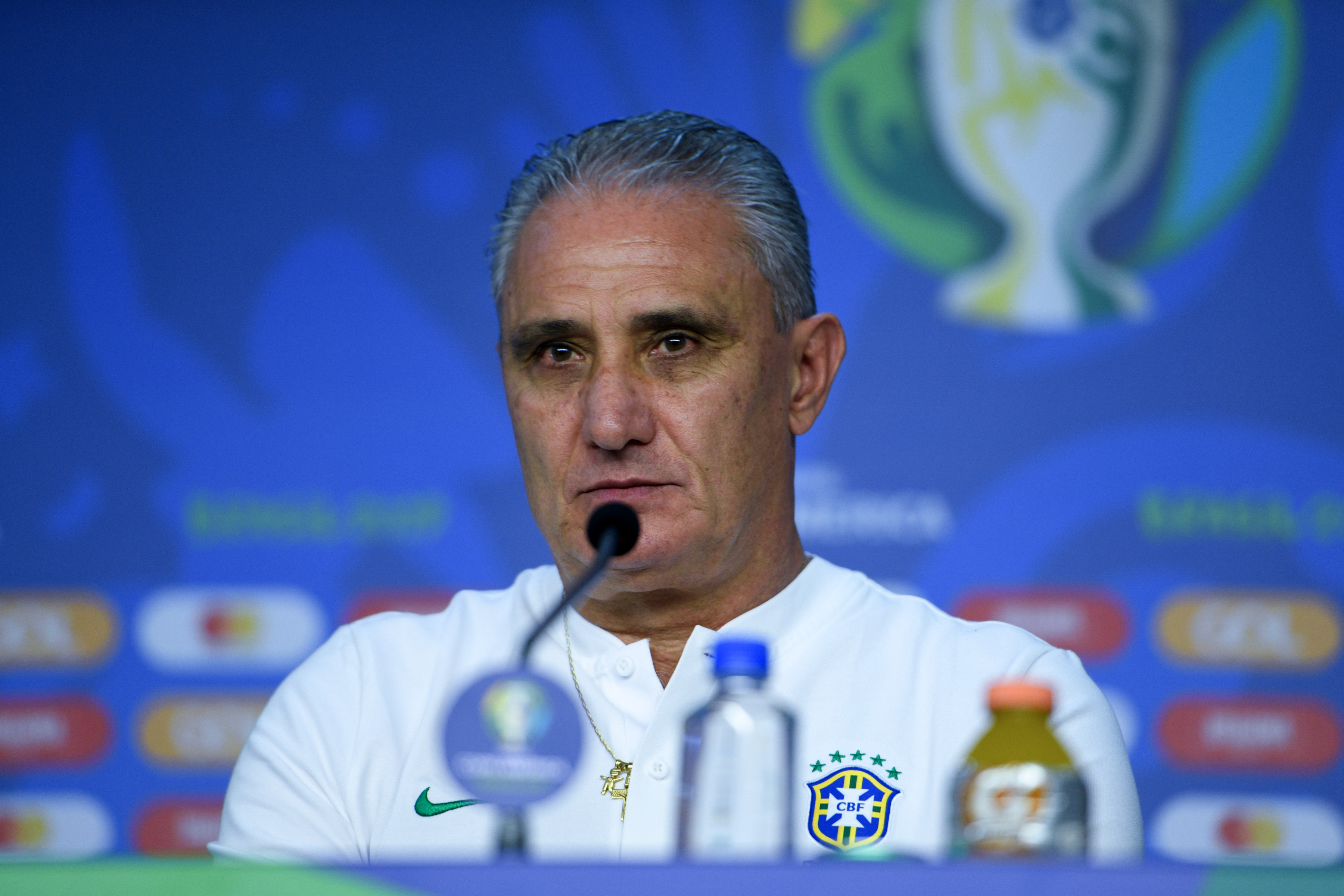 资料图:巴西队主教练蒂特在新闻发布会上。新华社记者辛悦卫摄