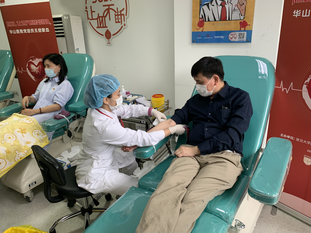 新华社上海6月14日电(记者袁全)14日是端午节,也是世界献血者日。当天上午,包括复旦大学附属华山医院感染科主任张文宏在内的32名华山医院的党团员一同来到上海市血液中心,进行志愿献血。