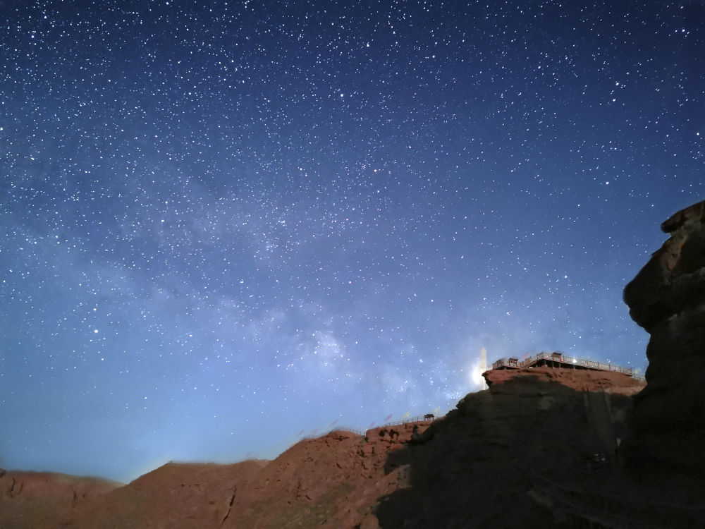 ↑山西省天文爱好者刘钊2020年6月在山西运城舜王坪景区拍摄的银河。(本人供图)