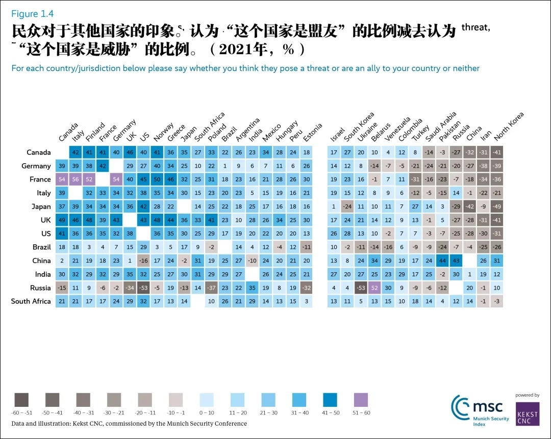 慕尼黑安全会议认为,通过这些指标,能够深入观察各国通过国际合作应对共同威胁的可能性,以及国与国之间的竞合模式。