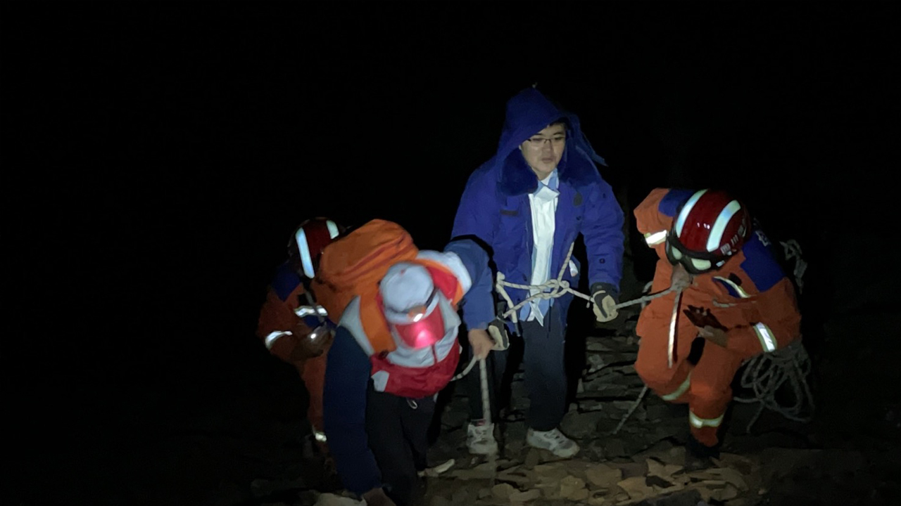 被困人员状态恢复后,在救援人员的保护下往山下转移。6月14日凌晨1时09分成功营救被困人员并将其送往当地卫生院。(总台央视记者杨妮)