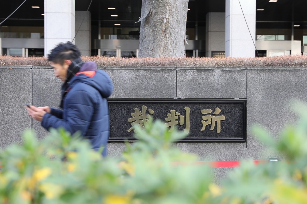 2019年1月8日,行人经过日本东京地方法院外墙。(新华社记者杜潇逸摄)