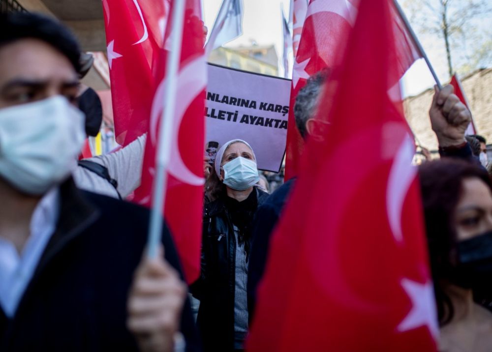 4月26日,土耳其民众在伊斯坦布尔集会抗议美方称亚美尼亚人遭杀害为“种族灭绝”。(新华社发,奥斯曼·厄尔萨尔摄)
