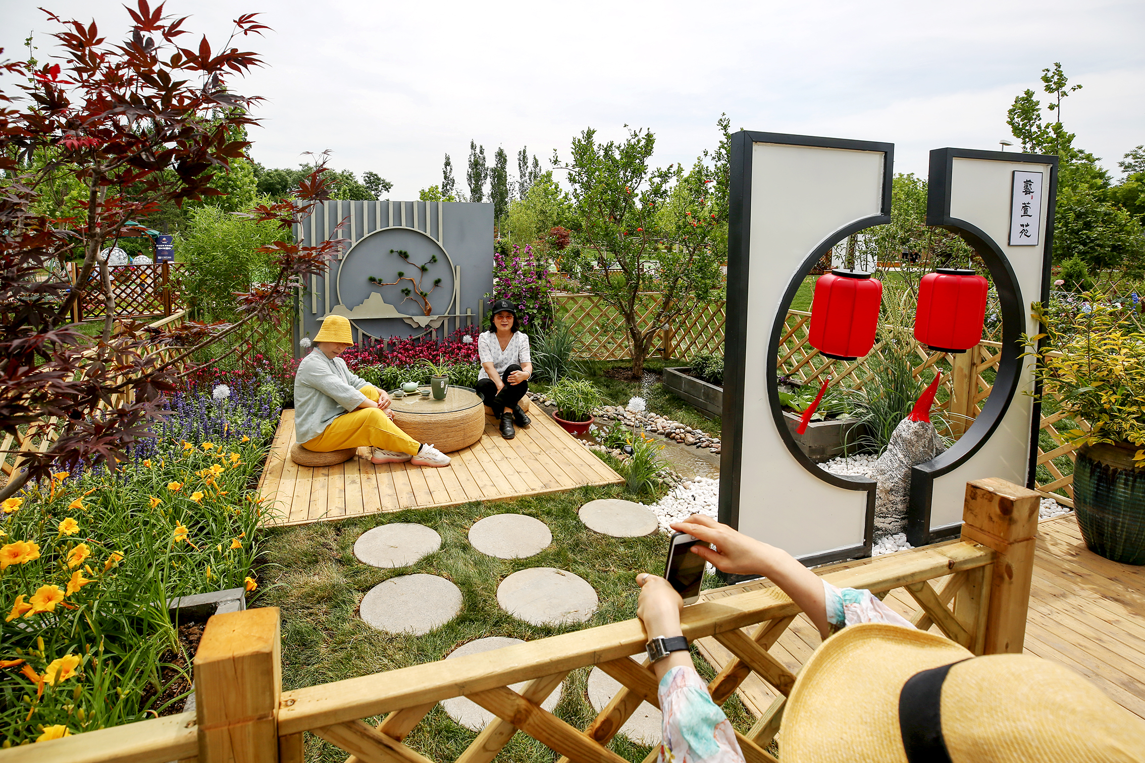 游客在迷你花园里拍照(北京市园林绿化局供图)