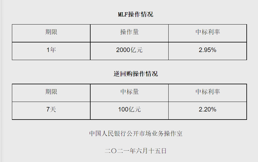 根据公告,此次MLF操作期限为1年,中标利率为2.95%。