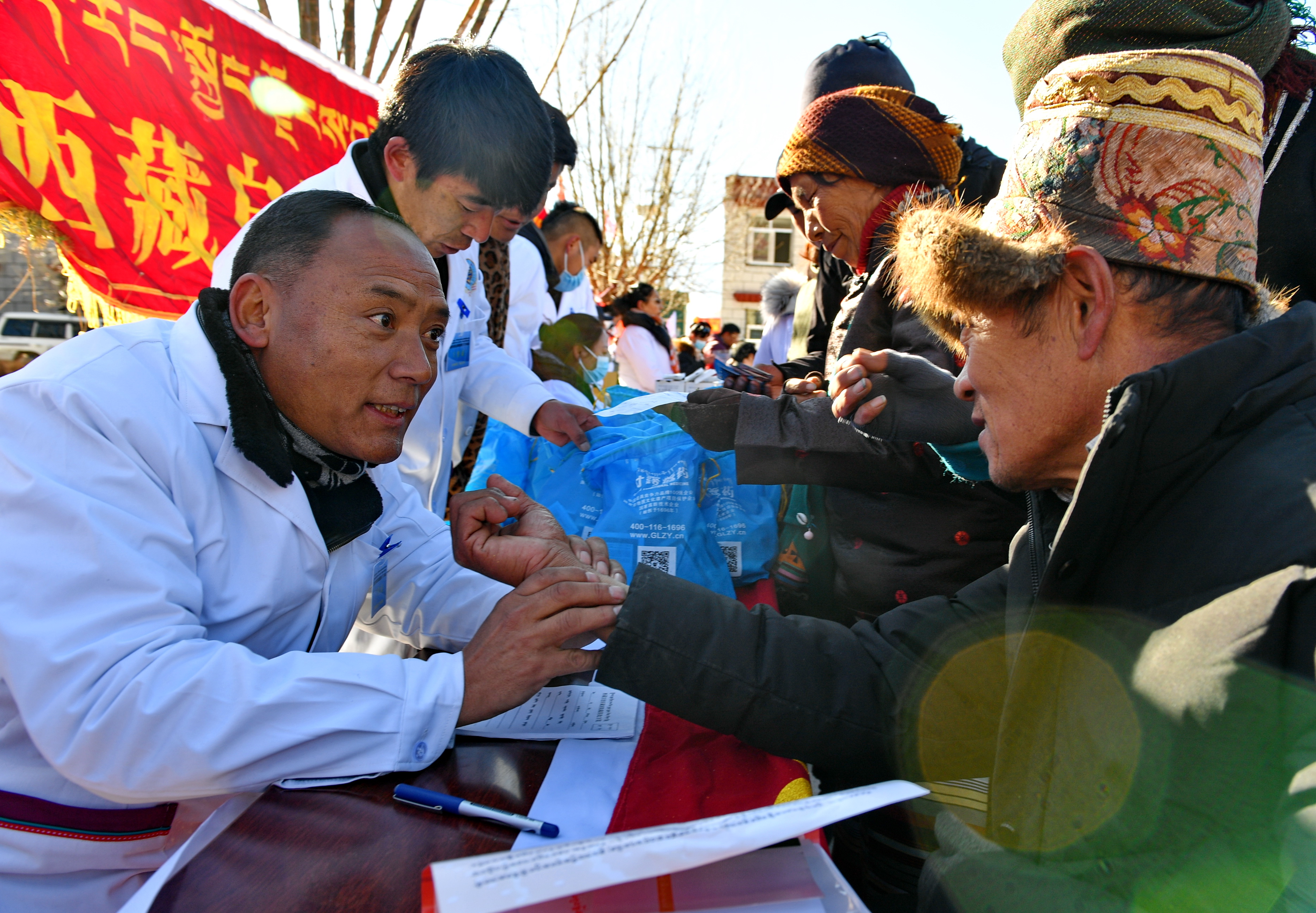 西藏自治区藏医院的医生在为群众义诊(2019年1月17日摄)新华社记者 张汝锋 摄