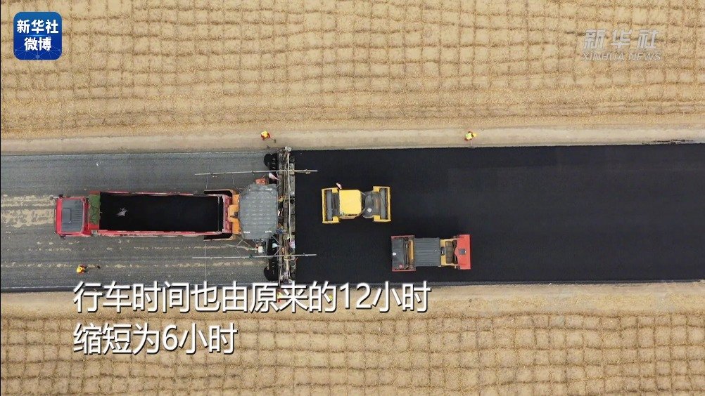 #沙漠铺路工人每天要喝十几升水#【#第三条横穿塔克拉玛干沙漠公路预计明年5月通车#】新疆巴音郭楞蒙古自治州尉犁县至且末县沙漠公路(尉且沙漠公路)目前正加紧路面铺油施工,预计明年5月建成通车。这是第三条横穿塔克拉玛干沙漠公路。它建成通车后,且末到库尔勒的距离将缩短280公里,行车时间也将由原来的12小时缩短为6小时。向沙漠里挥汗拼搏的建设者们致敬!(记者宿传义) 新华社的微博视频