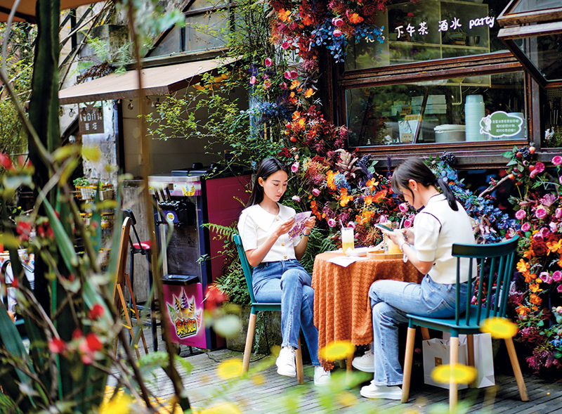 游客在在重庆北仓文创街区内一家充满文艺气息的饮料店小憩(4月22日摄) 刘潺摄/本刊