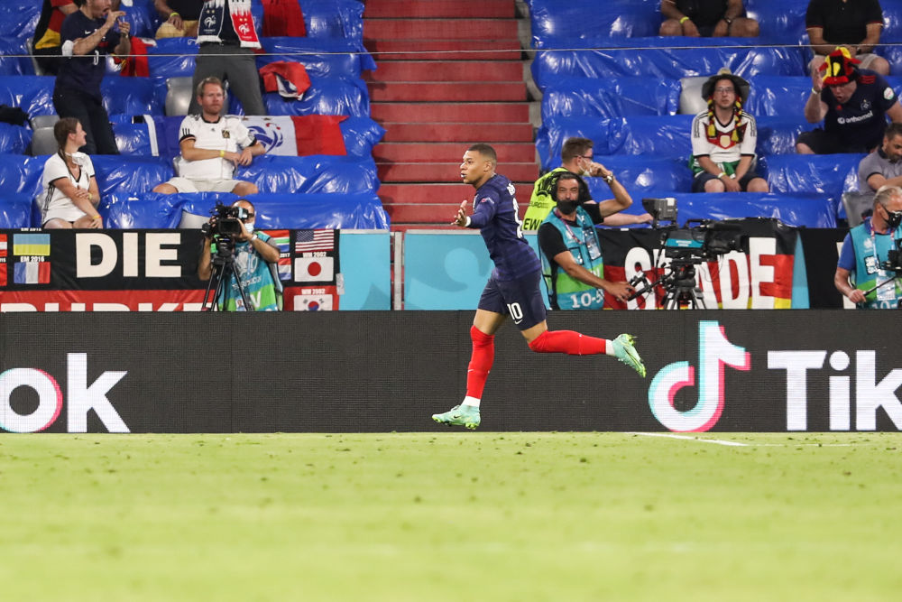 ⬆️法国队球员姆巴佩在比赛中庆祝进球,但该进球随后被判无效。