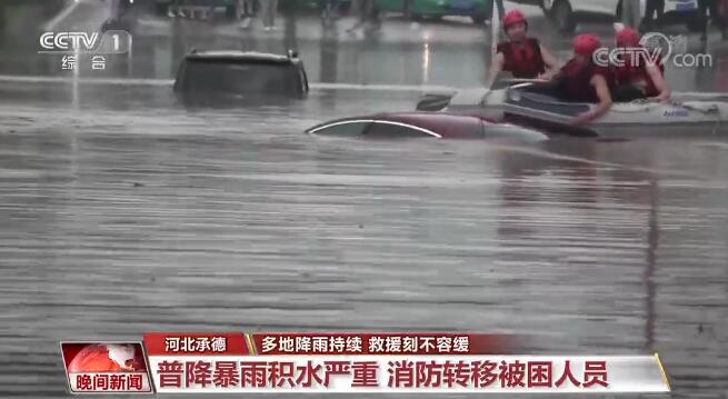 13日下午,河北承德市消防救援支队接到报警称,因普降暴雨,双滦区秀水大街一高架桥桥底积水严重,造成车辆和人员被困。接警后,消防紧急出动,到达现场后发现有三辆车被困,其中积水淹过了轿车和商务车的车顶,厢式货车的驾驶员则被困车顶,无法脱身。消防救援人员利用橡皮艇接近被困人员,最终成功将其转移到安全地带。