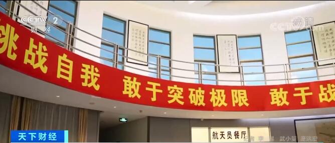 记者 武小斐:我后方的蓝色区域就是整个园区的核心建筑——问天阁。目前,参试人员已经对问天阁内部的设施设备进行了全面的检修和改建,并即将进入三级隔离状态。走进问天阁的大厅,“敢于挑战自我、敢于突破极限、敢于战胜困难”的横幅格外醒目,这是为执行此次任务的飞行乘组加油鼓劲特意悬挂上去的。