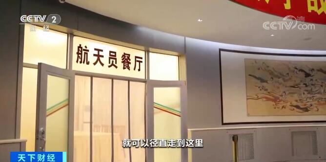 酒泉卫星发射中心保障人员 刘鹏飞:在这里放置五张桌椅,再往里走就是航天员的活动区域。按要求,除了航天员以外,无关人员是不允许进入的。这里是离餐厅最近的地方,航天员吃完饭之后就可以径直到这里,快速地对一天训练和工作进行总结并布置明天的工作,最大程度上节约了航天员的时间。