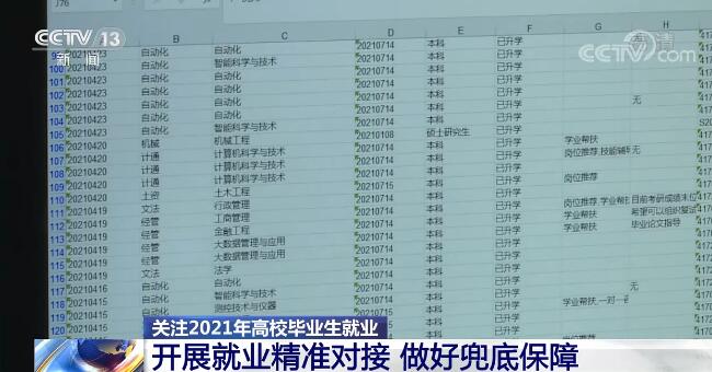 在北京科技大学,就业办老师们正在对2021届毕业生就业台账进行分析讨论。截至目前,6210名毕业生的毕业去向落实率已经达到81.7%,对每一个未就业学生,从岗位帮扶、技能辅导到岗位推荐,再通过与学生本人、就业导师的沟通交流后都分别列出了像这样的指导细则。