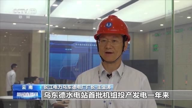 长江电力乌东德电厂厂长 王金涛:乌东德水电站首批机组投产发电一年来,生产了245亿度清洁电能,可替代762万吨标准煤。如果没有这些清洁水电的加入,我国将增加排放二氧化碳约1900万吨、二氧化硫6.4万吨。