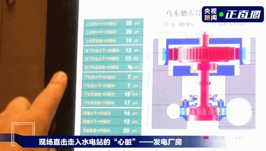 △乌东德水电站机组运行实时监控,画面中的单位精确到微米(μm),1微米相当于1毫米的千分之一。