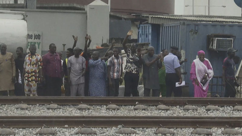 仪式结束,尼日利亚总统布哈里试乘由拉各斯前往阿帕帕港的支线铁路,沿途都是欢呼和雀跃的人群,他们为总统到来和铁路开通欢欣。