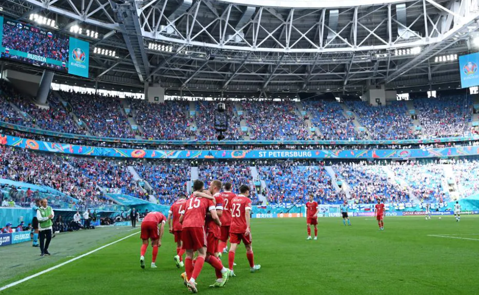俄罗斯队球员在场上庆祝进球。(图片来自欧锦赛官网)