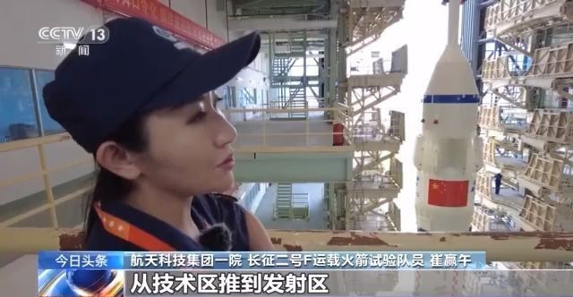 航天科技集团一院长征二号F运载火箭试验队员 崔赢午:我们下一步就要进行的一个动作,就是从技术区把火箭推到发射区,进行后续的发射前的相关准备工作。标志着火箭发射进入最后的倒计时。