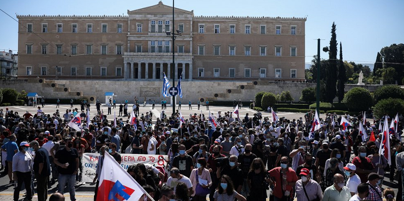 当天希腊多个主要行业工会不仅举行全国大罢工,还在首都雅典的议会大厦前举行了大规模抗议游行和集会。