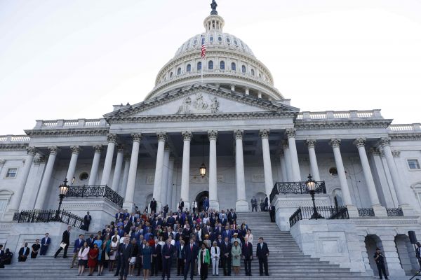 6月14日,美国国会议员在华盛顿的国会大厦外为约60万美国新冠逝者默哀。新华社发(沈霆摄)