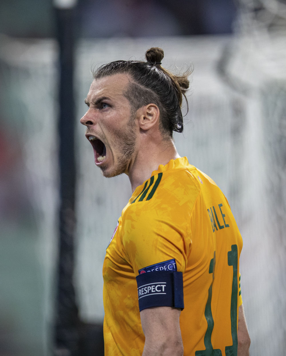 ⬆️威尔士队球员贝尔庆祝球队第二粒进球。