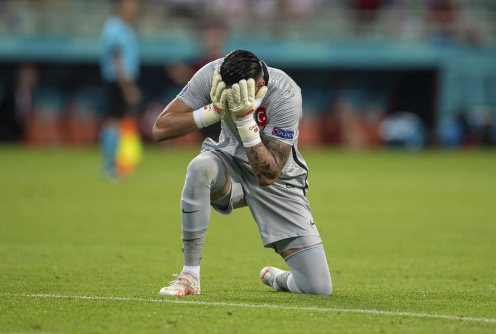 ⬆️土耳其队守门员恰基尔在本队错失得分机会后掩面懊恼。
