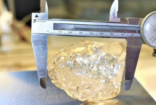 博茨瓦纳矿产资源、绿色科技与能源安全部长莱福科·莫阿希介绍,这颗重1098克拉、尚未被命名的钻石长73毫米,宽52毫米,厚27毫米。