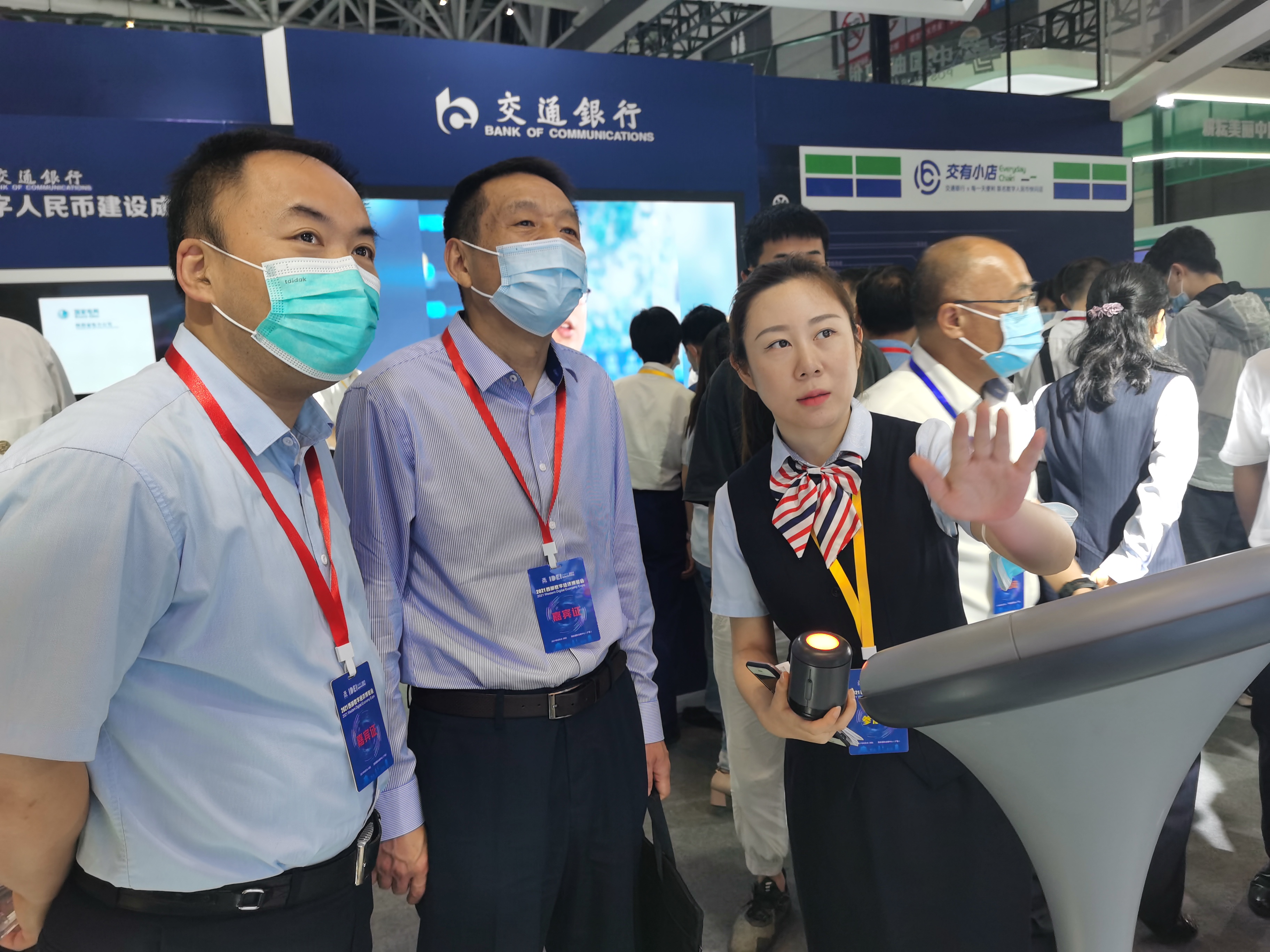 工商银行陕西省分行带来的机器人“工小慧”,让观众全方位了解数字人民币的基本概念;建设银行陕西省分行现场设置的高科技支付体验区,让消费者感受无网络环境下“碰一碰”、双离线支付、可视卡等带来的便捷消费体验;交通银行陕西省分行与连锁便利店联名成立的“交有小店—数字人民币快闪店”,优选上架爆款商品, 邀请观众体验数字人民币支付的安全与快捷;中国银行陕西省分行研发的“复兴壹号”智慧党建平台实现了数字人民币交纳党费,目前已累计完成10万多笔数字人民币党费缴纳;农业银行陕西省分行则展示了“惠农通”服务点使用数字人民币采购生活用品、服务点店主向上游供货商使用数字人民币在线支付等应用场景,全力助推乡村振兴。