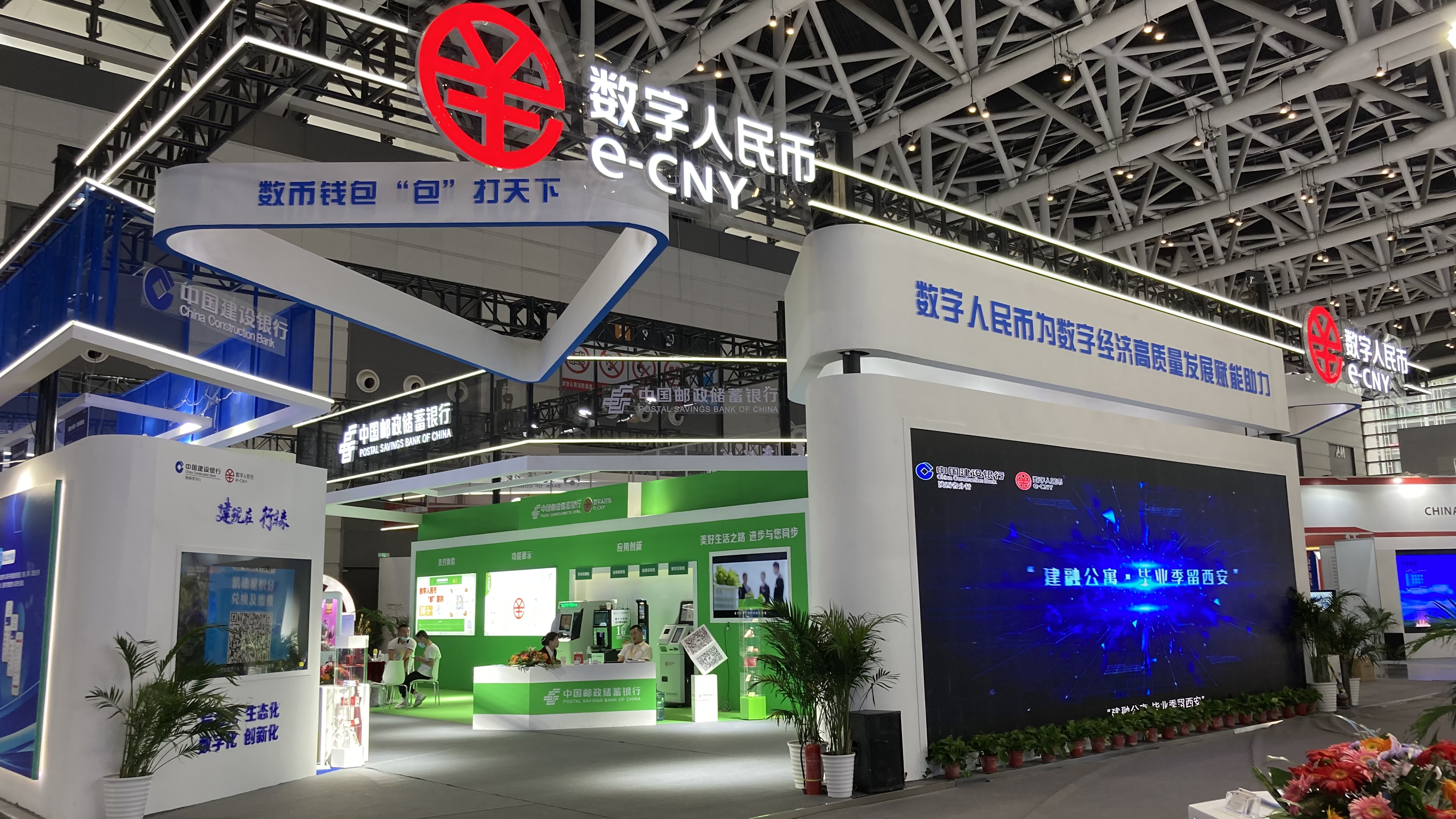 据人民银行西安分行负责人介绍,工商银行陕西省分行、农业银行陕西省分行、中国银行陕西省分行、建设银行陕西省分行、交通银行陕西省分行、邮储银行陕西省分行等6家数字人民币试点机构在本届西部数博会上“八仙过海,各显神通”,展示了数字人民币丰富的应用场景。