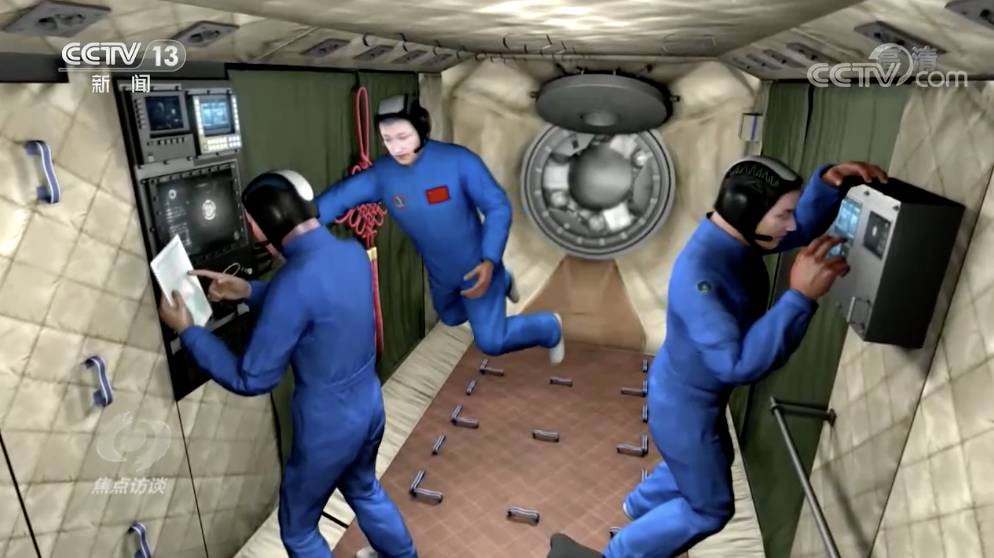 即使有机械臂的帮助,每次出舱活动也都需要三名航天员的密切配合,一人在舱内操控,两人出舱完成。三名航天员相互默契的配合,才能应对空间站建造阶段的各类新挑战。