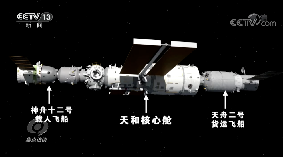 对接成功后,由天和核心舱、神舟十二号载人飞船、天舟二号货运飞船组成的三舱组合体开始稳定绕地飞行。在航天员升空之前,天舟二号货运飞船已在5月29日成功发射并且与核心舱对接,将6.9吨的物资配送到位。航天员进入核心舱后,首先要做的就是清点核心舱和天舟货运飞船上的各项物资。