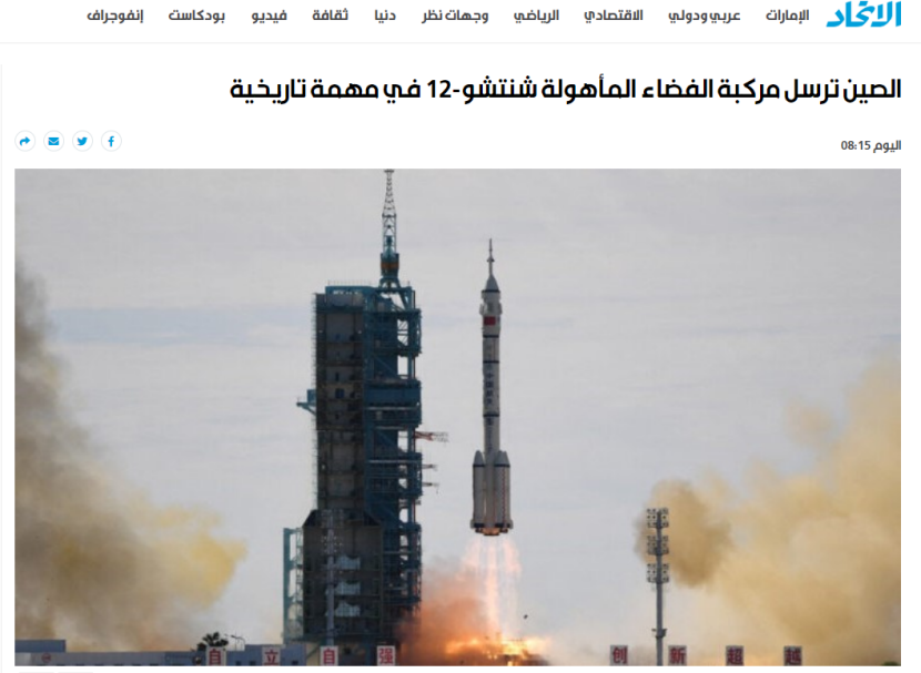 另外黎巴嫩、埃及、约旦以及卡塔尔等国主流媒体均在17日对神舟十二号载人飞船发射成功进行了报道。