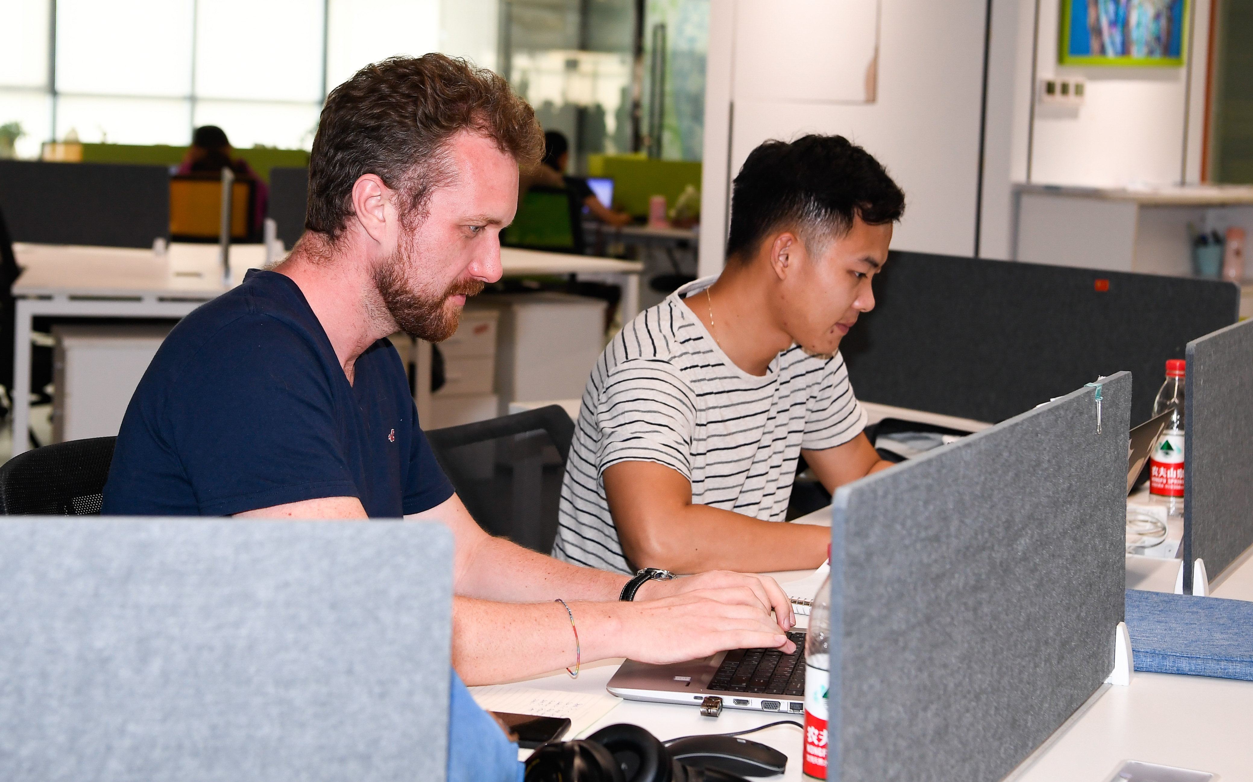 海南自由贸易港海口复兴城互联网信息产业园,企业员工在国际离岸创新大厦内办公。新华社记者 杨冠宇 摄