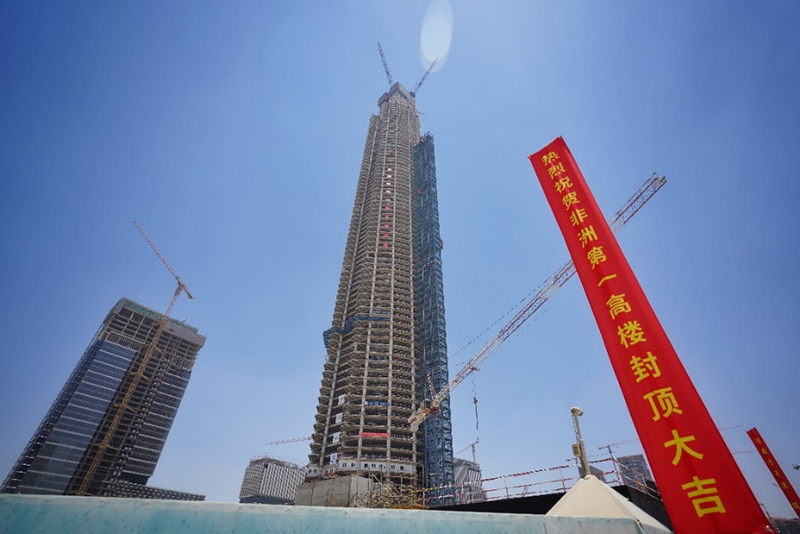 据了解,标志塔项目于2018年5月2日动工,是一个集办公、酒店、观光等功能于一体的复合业态超高层建筑。项目总占地面积6.5万平方米,建筑面积26.2万平方米,地下2层,地上78层,结构高度373.2米,塔冠最高点385.8米,是正在建设中的“非洲第一高楼”。