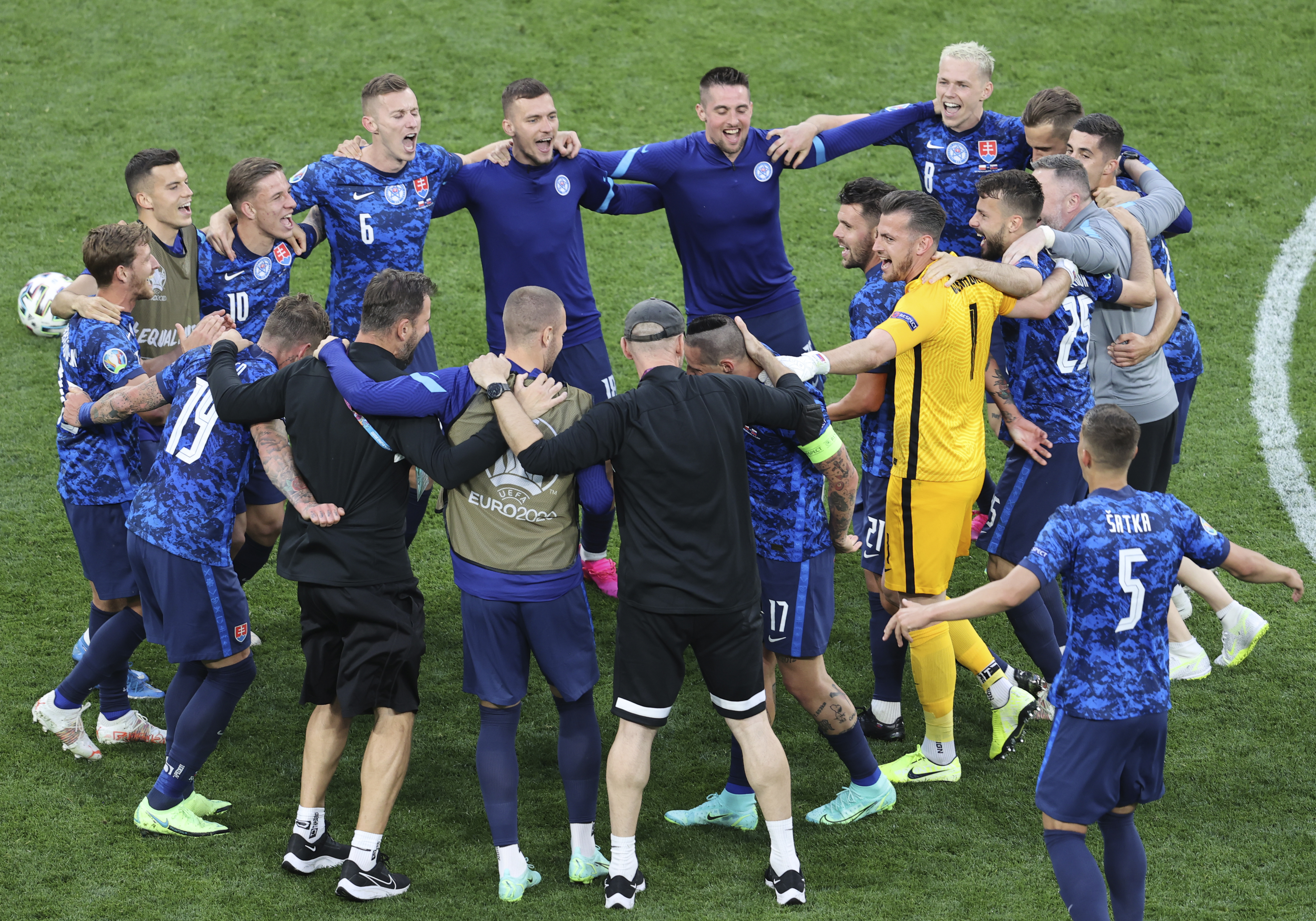 6月14日,斯洛伐克队球员庆祝胜利。新华社/美联