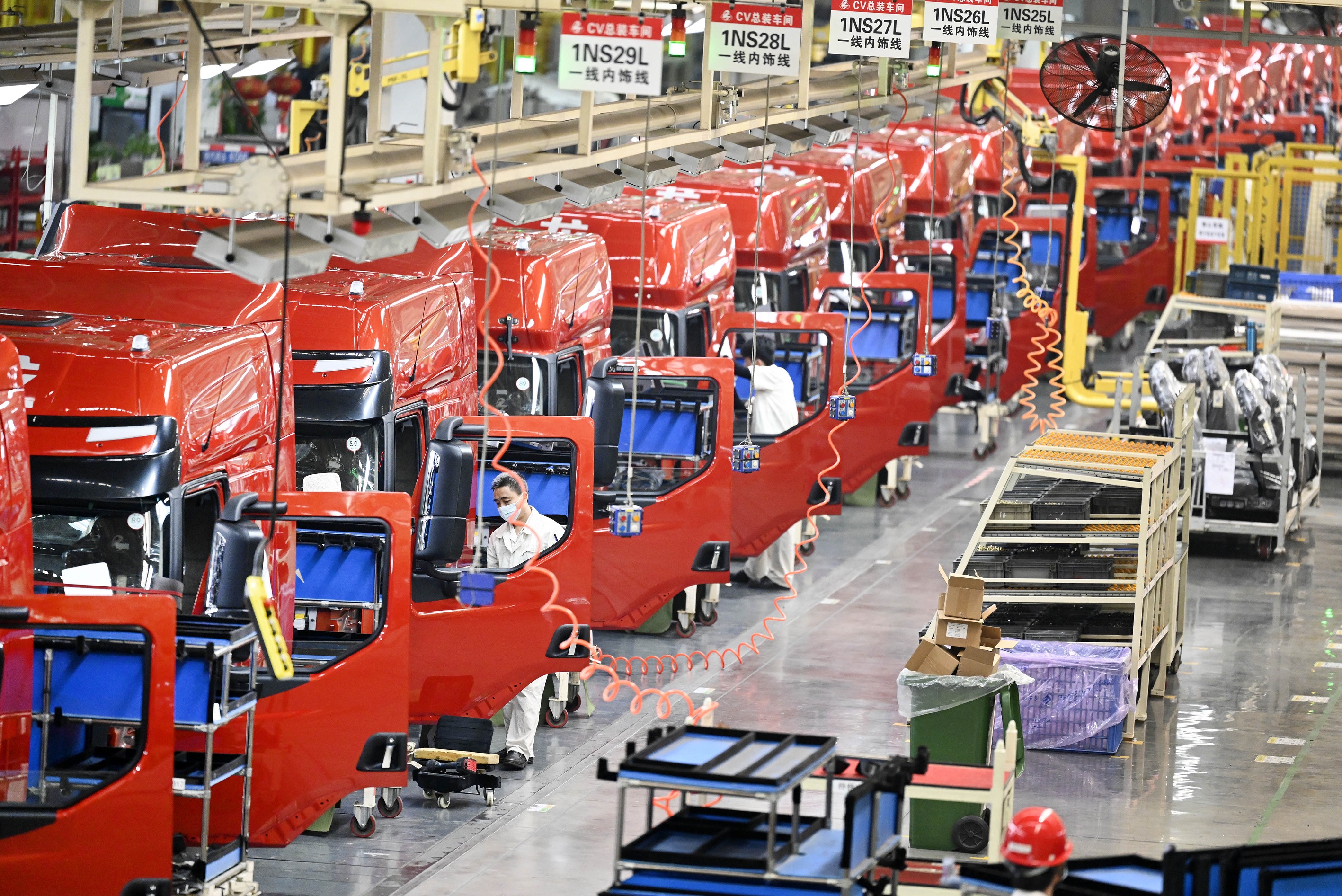 在广西柳州一家商用车企业,工人在生产线上忙碌。新华社发(黎寒池摄)