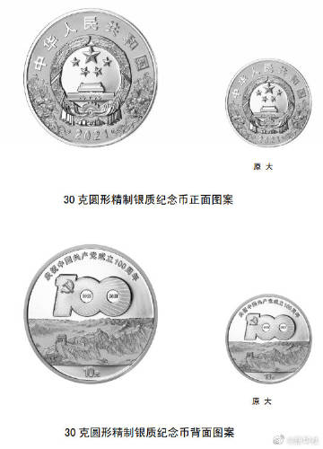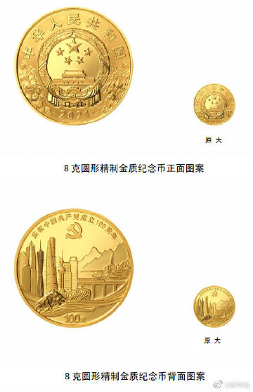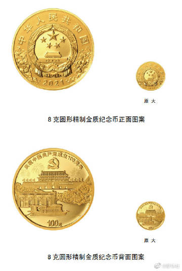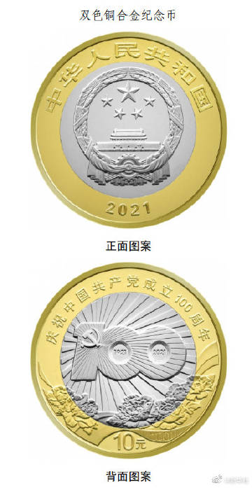 【#中国共产党成立100周年纪念币即将发行#】记者18日从中国人民银行获悉,人民银行定于2021年6月21日起陆续发行中国共产党成立100周年纪念币一套。该套纪念币共9枚,其中金质纪念币3枚,银质纪念币5枚,双色铜合金纪念币1枚,均为中华人民共和国法定货币。