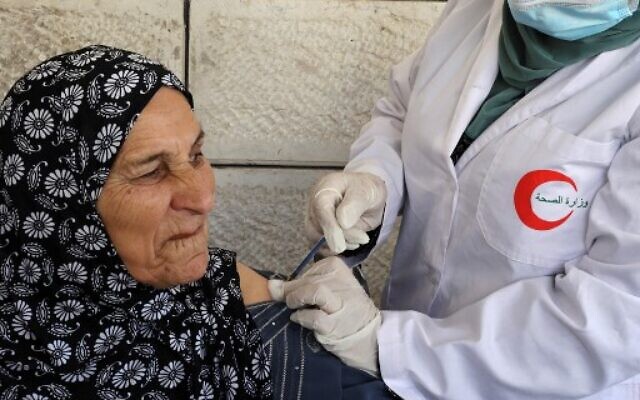 △图为一名巴勒斯坦妇女在接种新冠疫苗