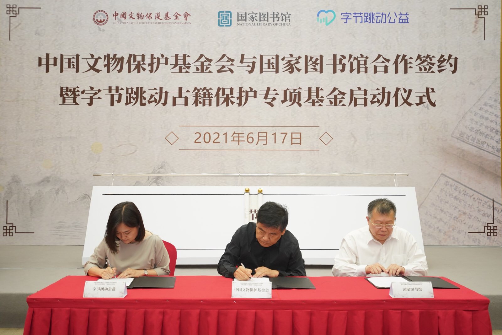 同时,中国文物保护基金会联合北京字节跳动科技有限公司合作建立“字节跳动古籍保护专项基金”,专门用来与国家图书馆合作开展古籍修复、人才培养、古籍活化与数字化等公益项目。