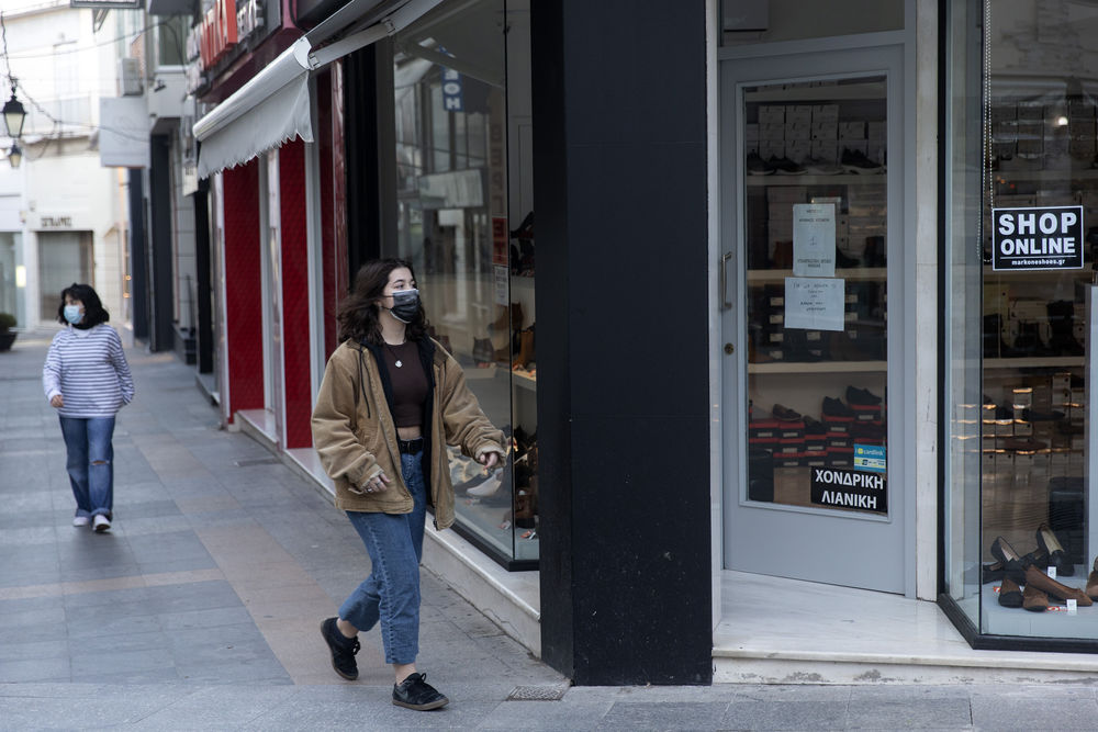 2月6日,两名女子在希腊哈尔基达街头走过。(新华社发,马里奥斯·罗洛斯摄)