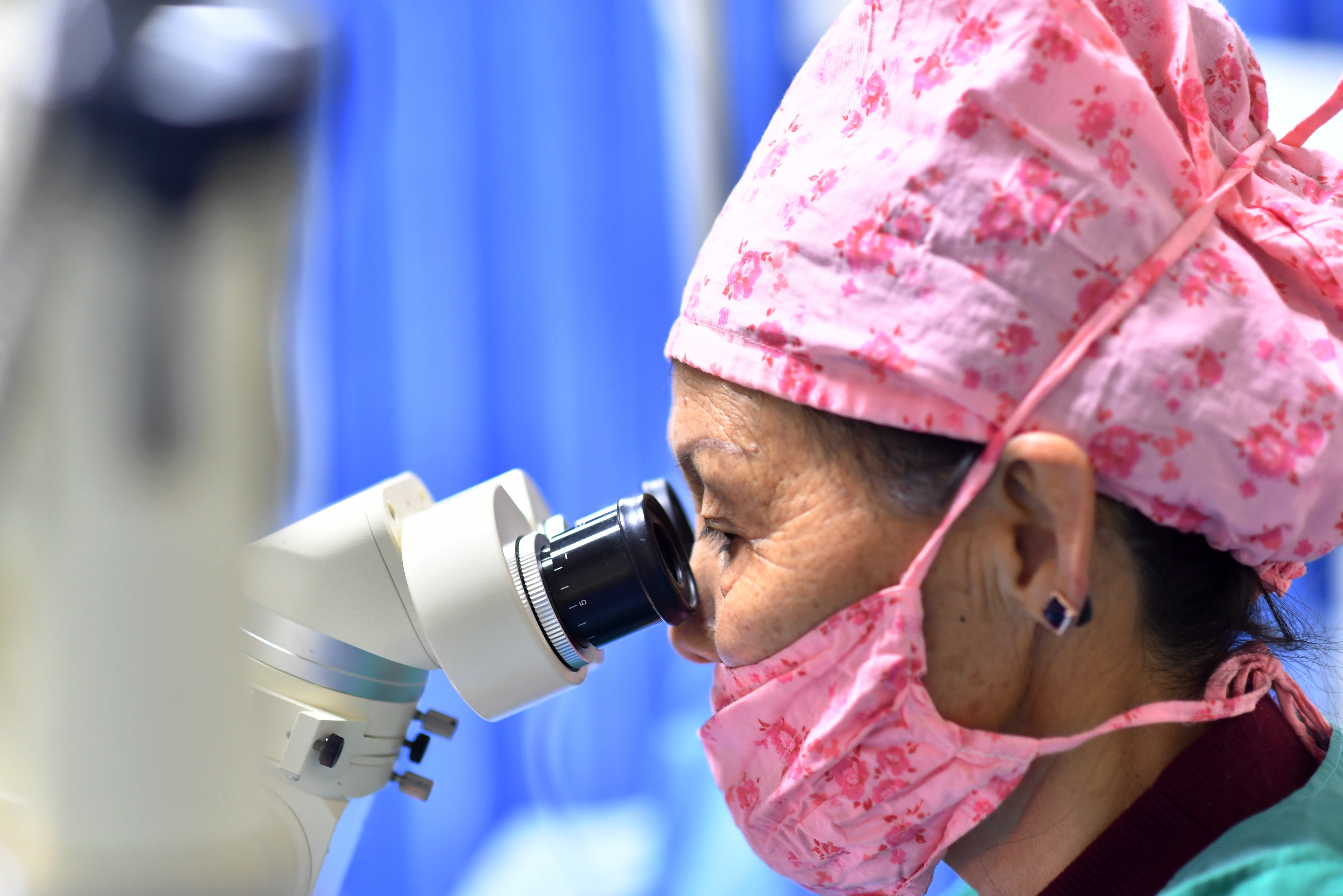 3月24日,西藏拉萨光明眼科康复诊疗院医生卓嘎在给白内障患者实施手术。新华社记者觉果 摄