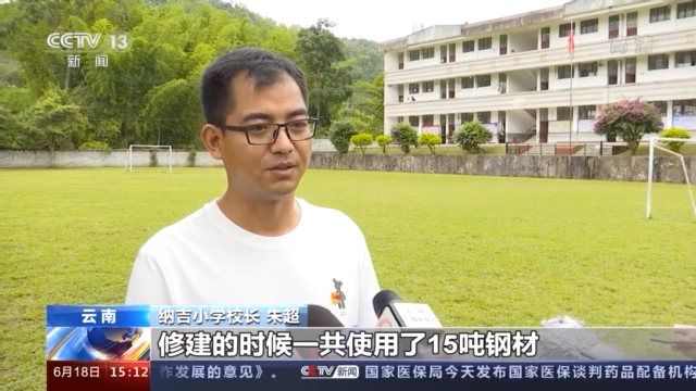 纳吉小学校长 朱超:我们的防护栏总长大约24米,高3.2米,修建的时候一共使用了15吨钢材。