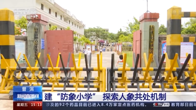 在普洱市思茅区倚象镇的纳吉小学,一眼望去,火焰木、香樟树亭亭而立,整个校园被树林环抱。2019年,纳吉小学成为全国第一所防象小学。校门外,一个巨大的防护栏吸引了众人的目光。