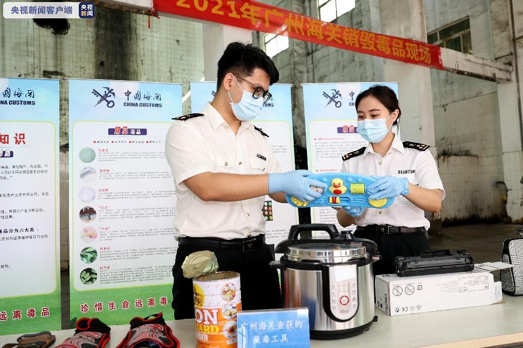 在第34个“国际禁毒日”来临之际,6月18日上午,广州海关对近年来口岸查获的412公斤走私毒品依法实施无害化销毁,这也是近年来广州海关销毁毒品规模最大的一次。