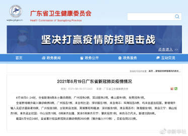 【#广东18日新增6例本土确诊病例#】据广东省卫健委消息:6月18日0-24时,广东省新增6例本土确诊病例,广州报告2例,深圳报告2例,佛山报告1例,东莞报告1例。