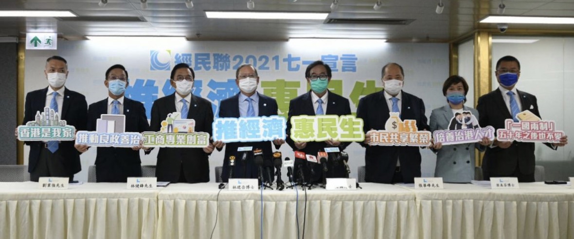 香港经济民生联盟(经民联)6月18日举行记者会发布“七一宣言”,提出在新时代的两大口号“推经济”和“惠民生”,并围绕上述口号提出四大纲领,希望推动香港回归经济城市的定位,重新树立“发展惠民”主调。
