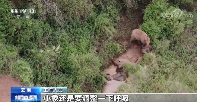 午休时间,无人机监测点围满了工作人员,大家密切地关注着象群的一举一动,原来有只小象掉进了河里。河水对于小象来说还是有点儿深,它都没有办法控制自己,周围的工作人员都为它捏了一把汗。