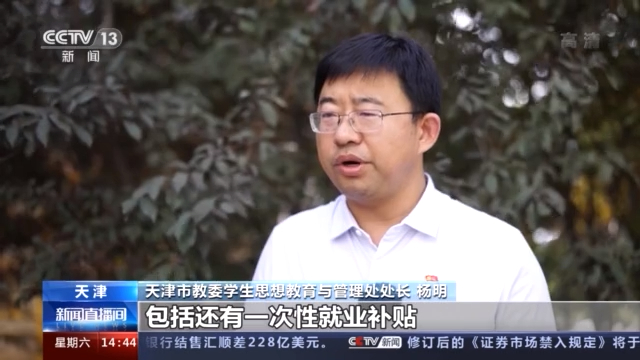天津市教委学生思想教育与管理处处长 杨明:提供房租补贴、创业补贴,包括还有一次性就业补贴,真金白银支持高校毕业生。