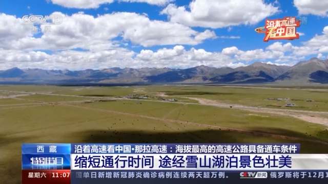总台记者 王磊:继续往北,还能看到大面积的湿地和壮美辽阔的藏北草原,沿线牧区的老百姓可以通过这条高速公路更方便快捷地前往拉萨等地,学习先进的技术技能,就业渠道也更广阔。